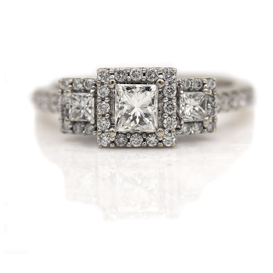 Vintage 1.05 CTW Art Deco Style Princess Cut Diamond Halo Engagement Ring
