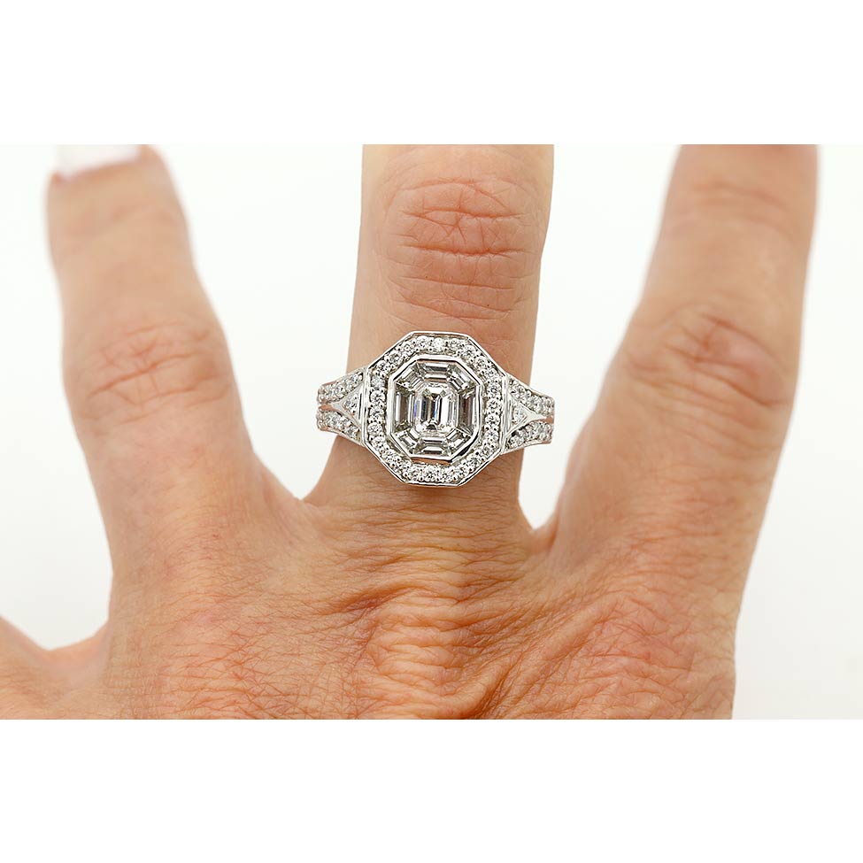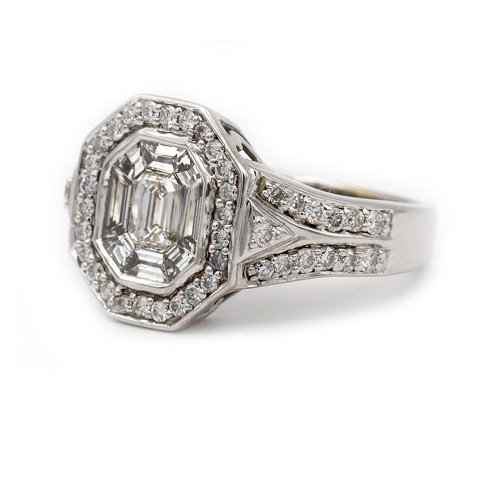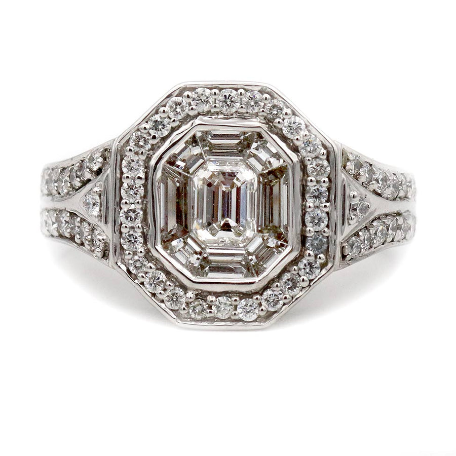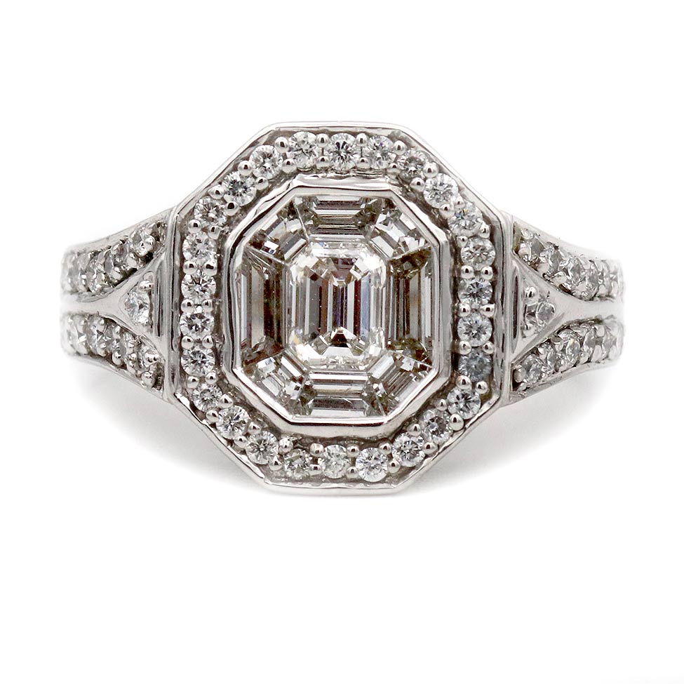 Vintage 1.95 CTW Illusion Set Emerald Cut & Baguette Diamond Vintage Engagement Ring