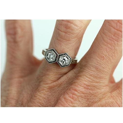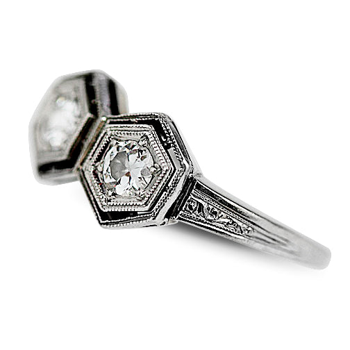 Vintage .40 CTW Twin Stone Hexagon Antique Diamond Engagement Ring