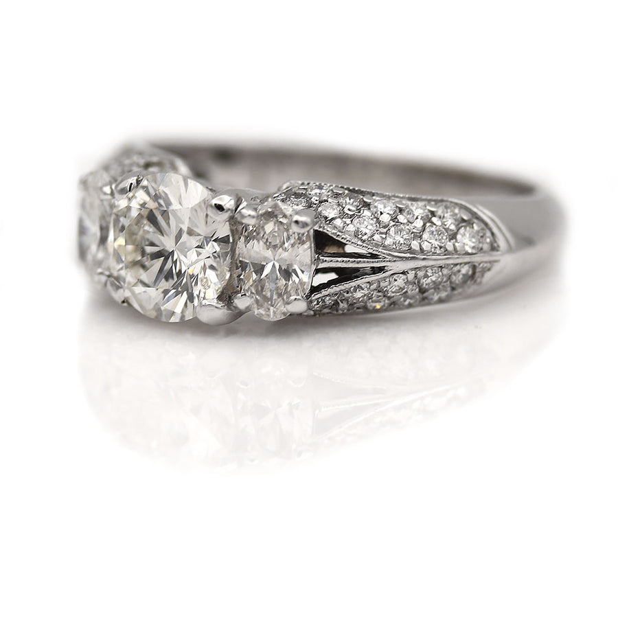 Mid-Century 1.91 CTW Simon G Vintage Engagement Ring Oval Cut Diamonds GIA H/I1