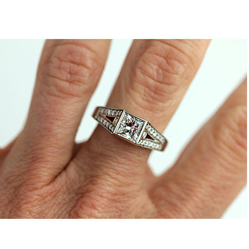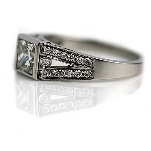 Vintage Style 1.50 CTW Split Shank Princess Cut Diamond Engagement Ring GIA K/SI2